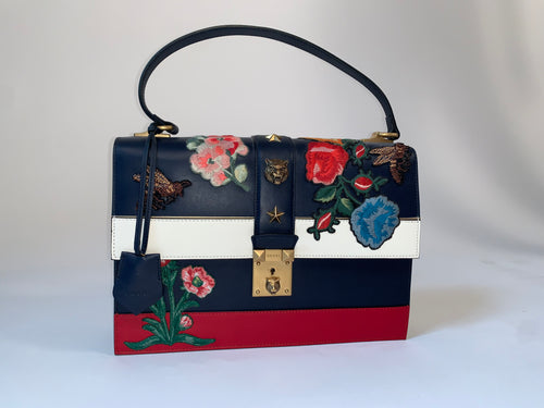 *BRAND NEW* Gucci Calfskin Embroidered Riche Stripe Shoulder Bag